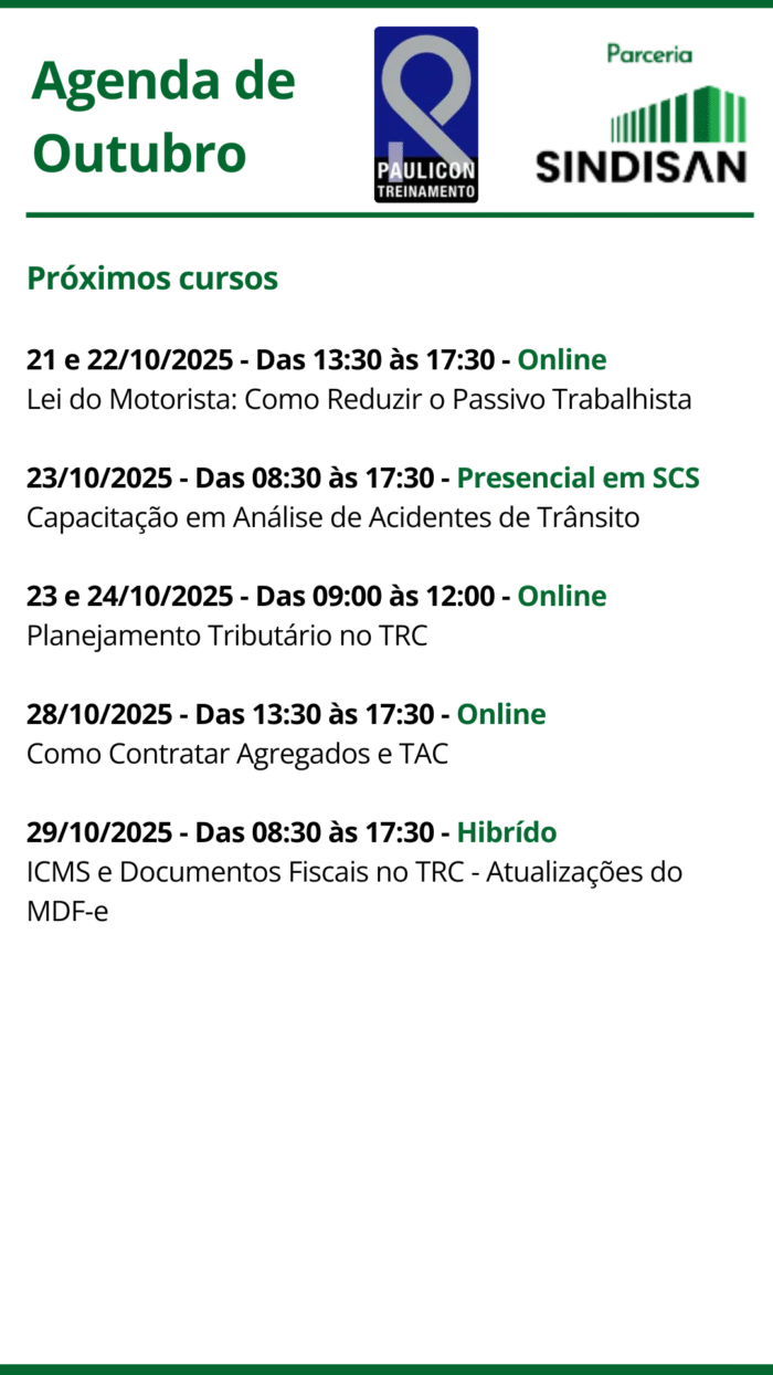 Confira a agenda de atividades da PAULICON TREINAMENTO!