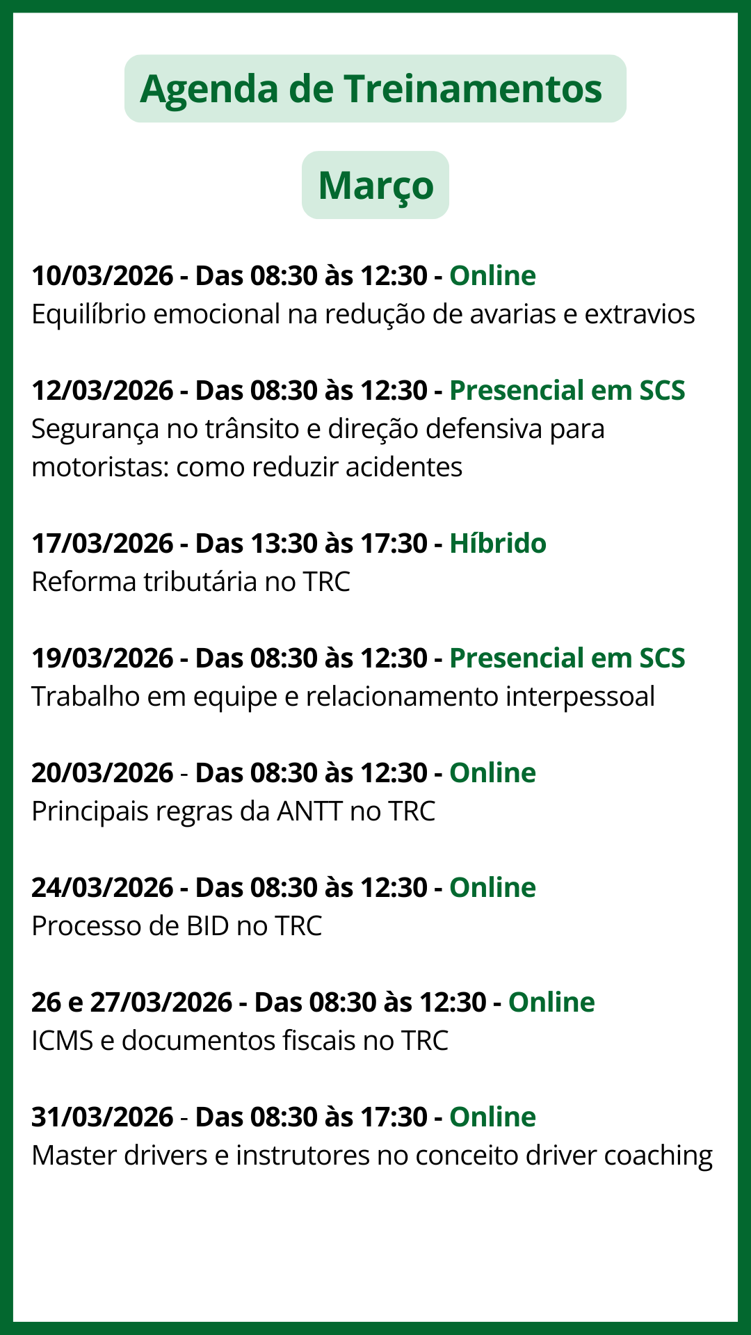 Cursos e treinamentos especializados no transporte rodoviário de cargas com descontos exclusivos para associadas do SINDISAN.